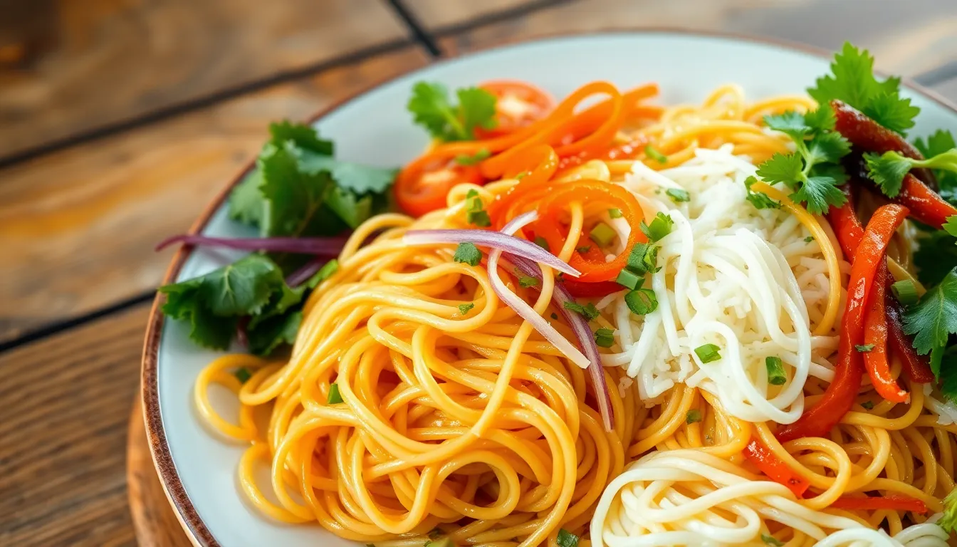 Rice noodles are lighter compared to wheat varieties. Each serving offers about 109 calories, 0.2 grams of fat, and a modest 25 grams of carbohydrates. Low fiber content remains a common characteristic, making nutritional enhancements crucial. People often opt for rice noodles in gluten-free dishes. Pairing rice noodles with vegetables or protein can elevate nutrient density in meals.